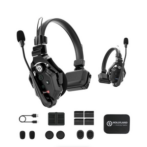 The Hollyland Solidcom C1-2S is a full-duplex wireless DECT intercom system engineered to provide clear audio and all-day wearing comfort in a true-wireless design with no bodypack or hub required. This configuration includes 2 single-sided headsets, 1 master and 1 remote unit, along with rechargeable batteries, a charger, and accessories. The system uses DECT 6.0 encryption and dual antenna technology to ensure secure and reliable transmission at a range of up to 1000'—making it well suited for a variety of applications including film production, concerts, and public events.