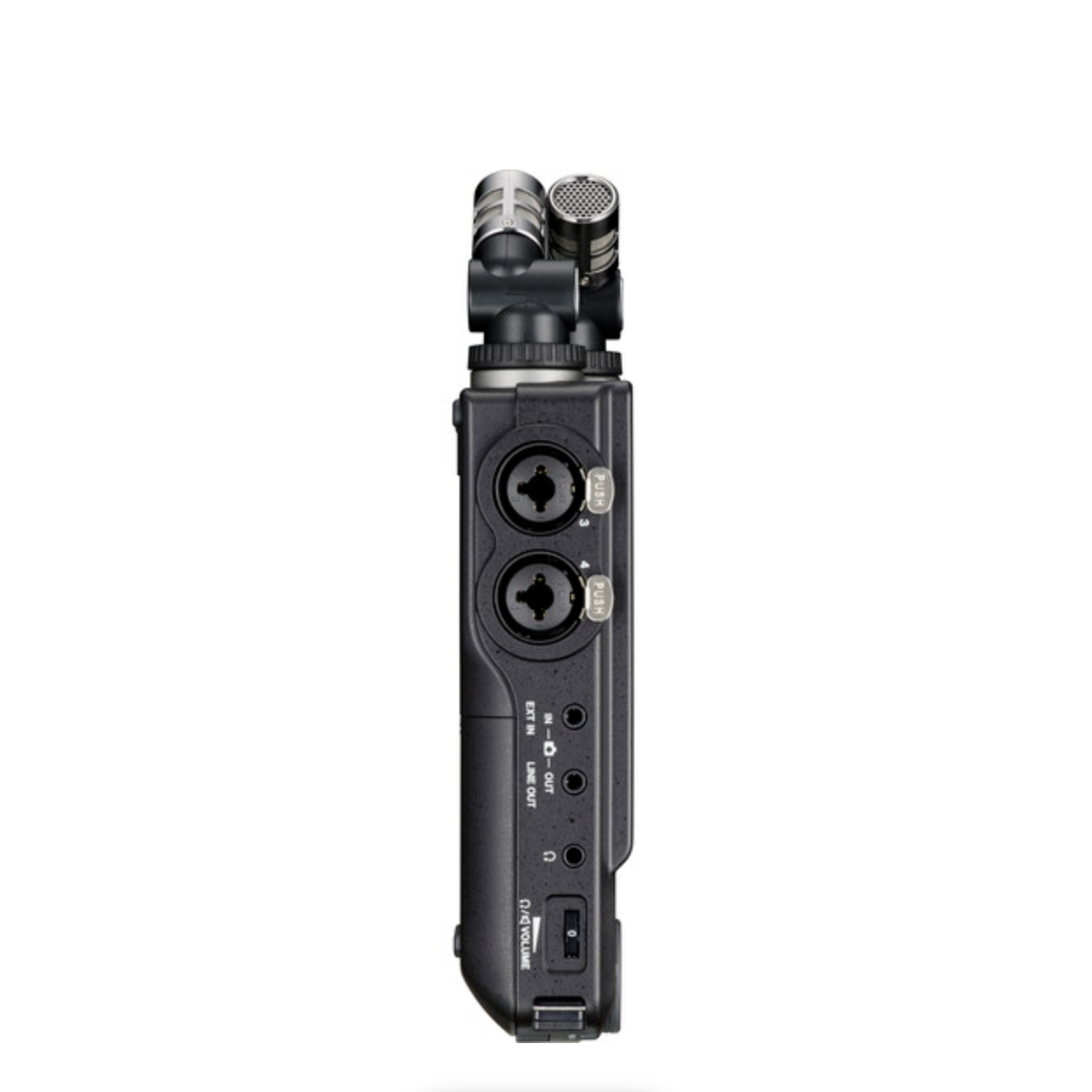 The Portacapture X8's detachable 14.6mm large-diaphragm condenser microphones empower you with crisp stereo capture, even without external mics. Both mics can be detached/attached to form A-B or X/Y mic configurations. Use the A-B position (capsules facing outward) to produce a wide stereo image, or switch to the X-Y position (capsules facing inward) if you need a tighter stereo field with a strong center presence and fewer phase differences.