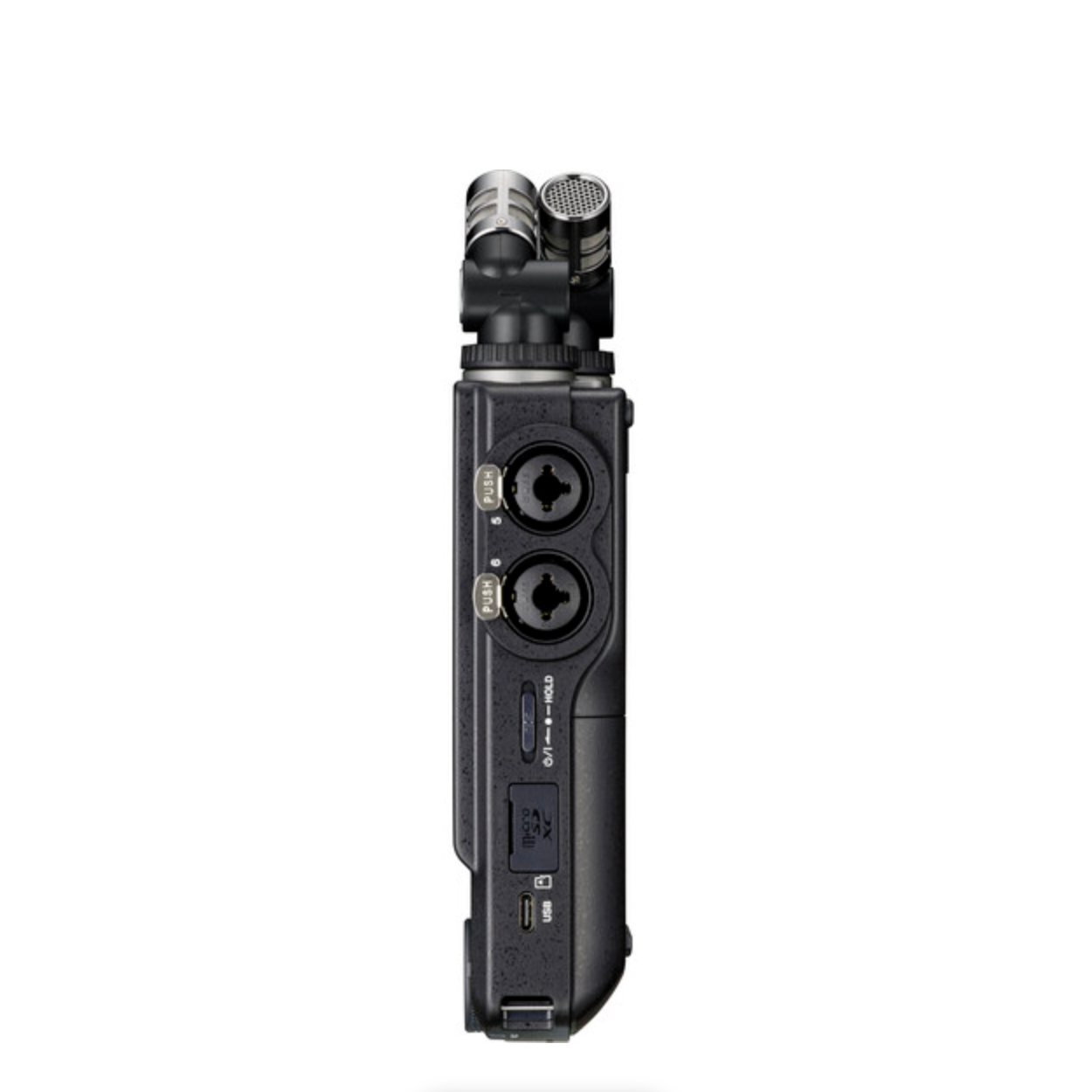 To maximize compactness and portability, the Portacapture X8 records directly to media cards (available separately). microSD, microSDHC, and microSDXC cards (up to 512GB capacity) are supported for long recording times, even at high audio resolutions.