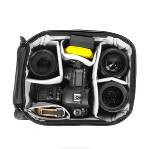 The small/medium, black Camera Cube V2 from Peak Design is designed to protect and organize your photo, video, and drone gear. It can be used as organization inside another bag or by itself. Store small mirrorless kits or full pro photo, video, and drone setups. It is made to fit in most Peak Design travel bags and can be securely attached inside with the included C-Clips. This cube can also fit in other brand's bags. It comes with different-sized FlexFold hook-and-loop dividers that you can configure multiple ways to suit your gear. Included shelf dividers allow vertical stacking to maximize capacity. This cube is made from a Bluesign-approved 160D nylon canvas shell that has weatherproof taping and a weatherproof Ultra Zips zipper. The main opening is wide, so you can see and easily access all your gear. There is also removable padding, and you can tuck the flap away for faster access when using the cubes in another bag. An included floating pocket stores filters, lens caps, and other small accessories. External Cord Hook attachment loops let you carry the cube with any Peak Design strap, which is sold separately.
