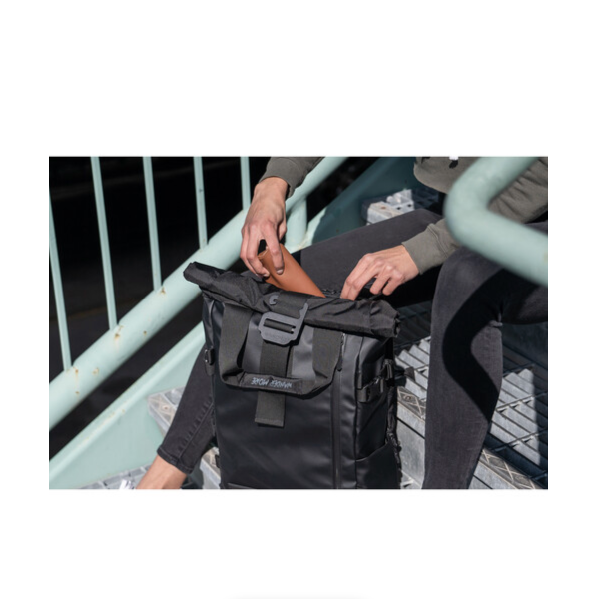 WANDRD took user feedback and updated their venerable line of backpacks to create the 21L PRVKE Backpack v2, offered here in black. Featuring a sleek minimalist style and thoughtful design improvements, the bag is subdued cool and infinitely practical for any adventure or daily use. Designed to hold a variety of gear, tech, and personal belongings, it has a 21L capacity and the roll-top closure expands to create a capacity of 26L if you need it. Magnetic tote handles allow you to comfortably carry it by hand, and a side opening gives you quick access to your camera or other essentials without having to unpack your bag. If you pick up the optional camera cube, you can align it with the side access opening for fast shooting on the go. An exterior side pocket holds a water bottle or small tripod while the roll-top closure provides weather protection in addition to the pack's weather-resistant materials and zippers.