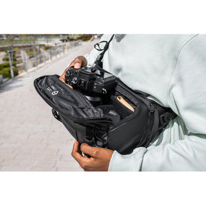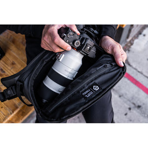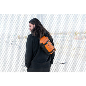 The 6L ROGUE Sling in Sedona orange from WANDRD is an innovative sling for carrying your camera or using as an everyday bag. It may look small but it will hold just about everything you need for a full day of shooting, working, or snacking. It has a removable divider so you can customize the interior to fit your needs, plus straps on the bottom for attaching your water bottle or tripod. It also has a pocket for a 16" laptop. The sling features a removable shoulder strap that adjusts from 16.5-43.5" for multiple carrying