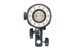At 5800K, the AD200Pro II is well-suited for portraits, weddings, and other types of photography. Both of the included flash heads come with a bi-color LED modeling lamp adjustable from 2800 to 6000K. These LED modeling lights output 1400 lux at 3.3' and can be set to proportional to mimic the effects of the flash's power setting for pre-visualizing your final shot, or can be adjusted from 10 to 100%. The H200J II provides up to 5.5 hours of continuous modeling light, while the H200 II offers up to 6 hours.