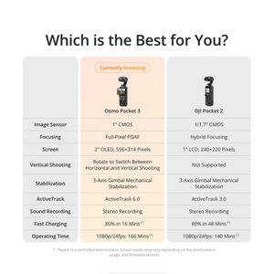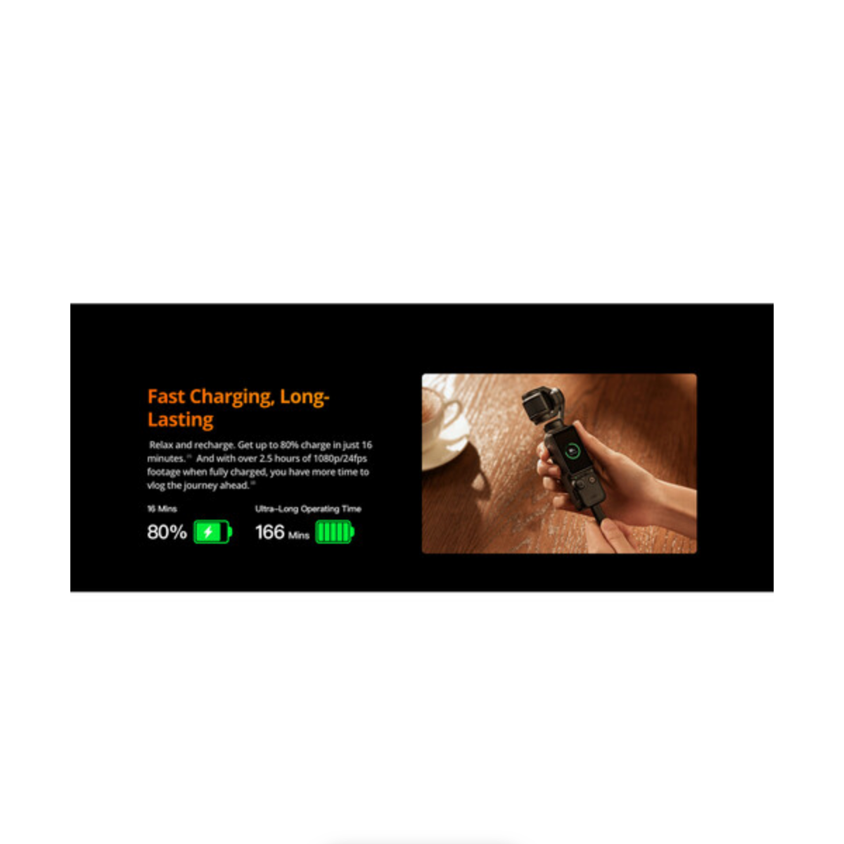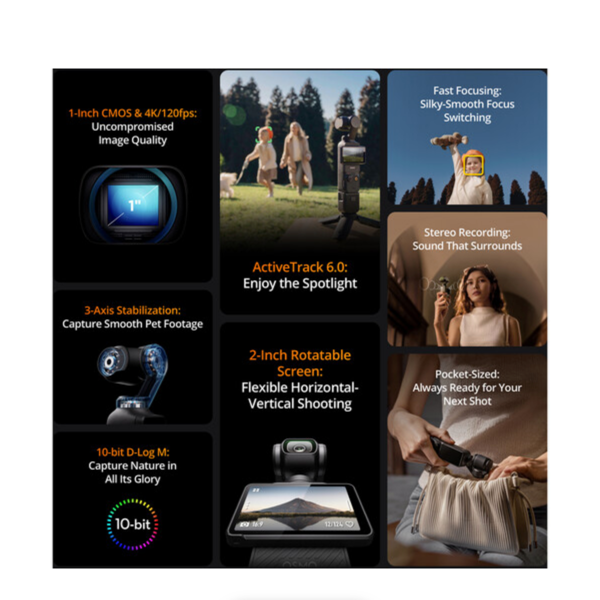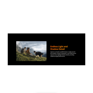 Built for travel, the Pocket 3 is compact and always ready to capture any special moment. Single-handed operation allows you to begin shooting in one second to capture photos and videos at the speed of life and in your preferred vertical or horizontal aspect ratio.