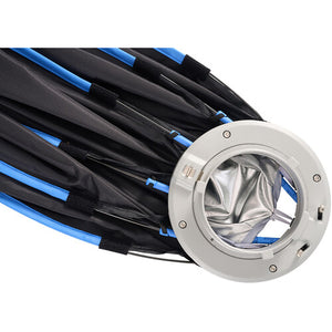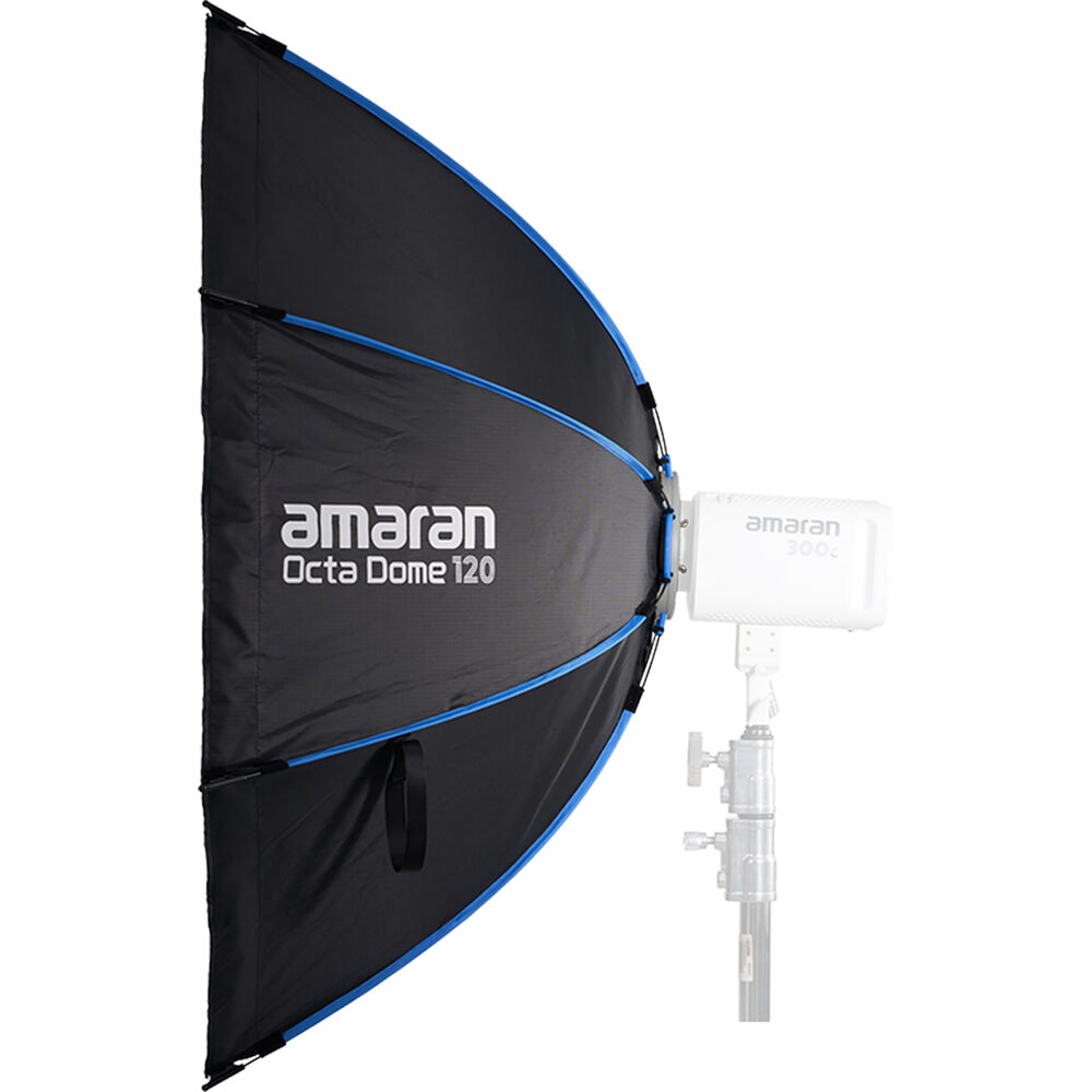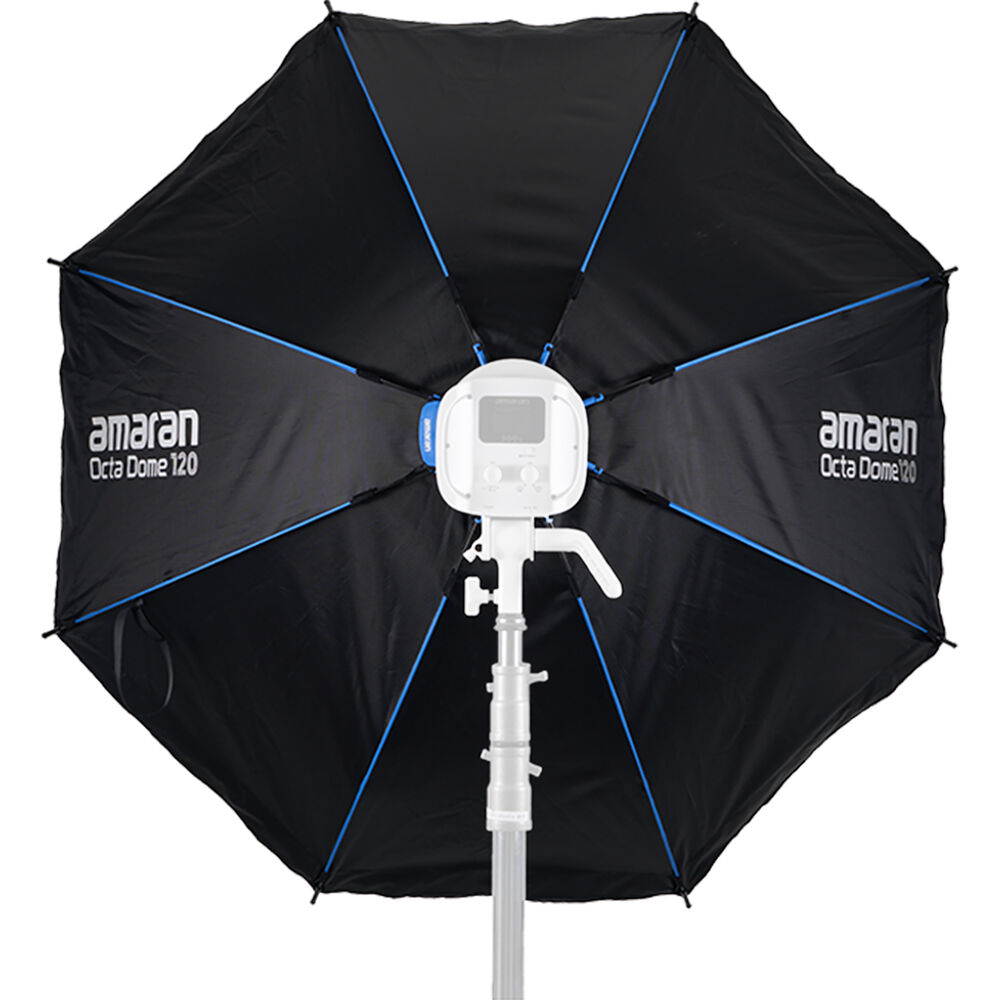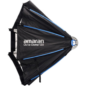 The amaran Octa Dome 120 Softbox is a foldable, 120cm (4ft) large octagonal Bowens Mount softbox built for quick setups. With a quick-folding, flat-pack design, this extra large 8-sided modifier transforms hard point-source LEDs into the ultimate soft, natural light source for large environments in seconds, while saving valuable space when stored with its slim profile.
