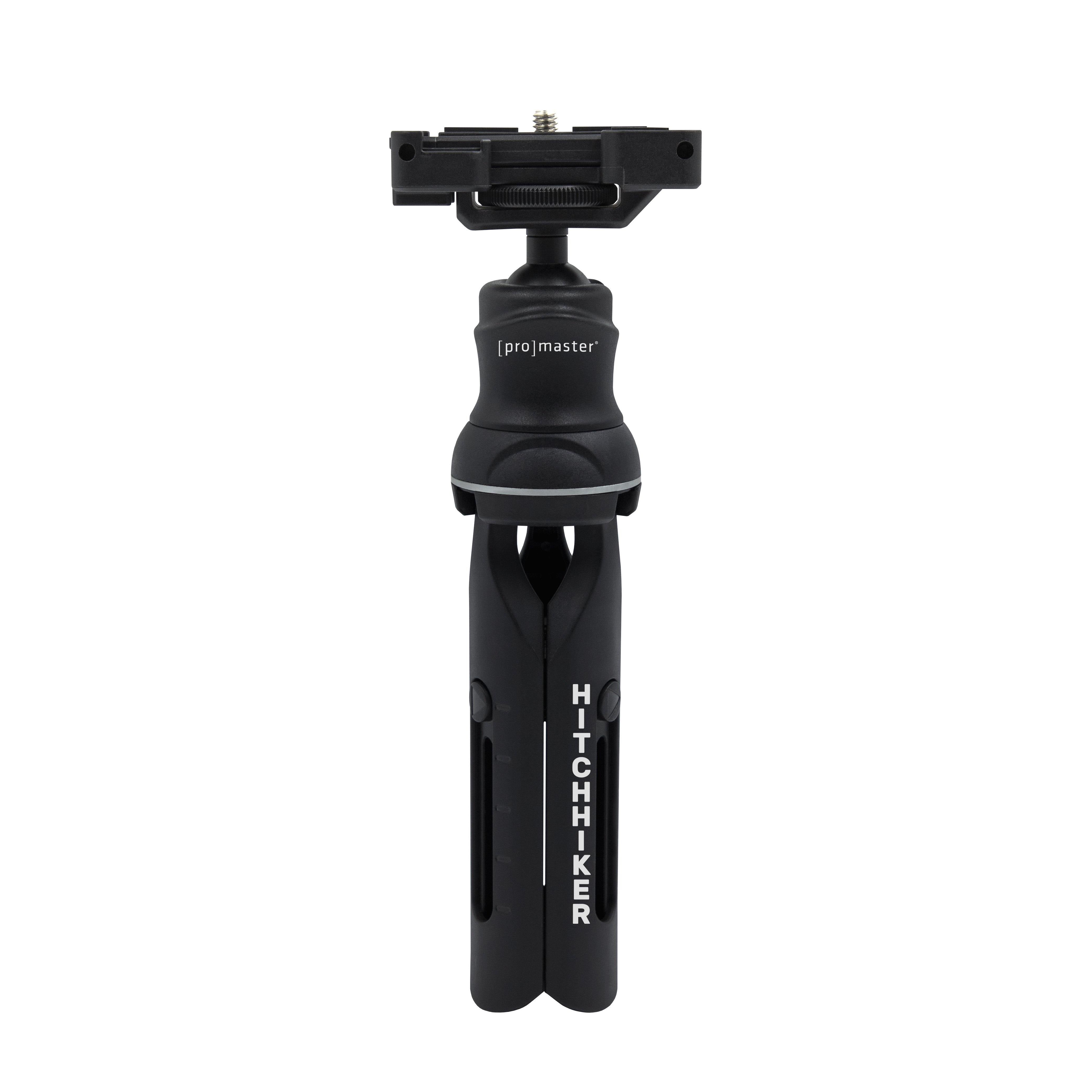 A convertible tripod/hand grip for cameras and smartphones that switches between camera-mode and smartphone-mode in just seconds. You’re going to want to take along a Hitchhiker everyplace you go. Whether you are carrying a camera, a smartphone, or both… whether you are capturing still shots, video footage, or both… whether you need a tripod or a handheld stabilizer, the Hitchhiker does it all! The Hitchhiker features an amazing ball head with a built-in, foldable smartphone clamp which converts from camera-mode to smartphone-mode in just seconds. A cold shoe for holding accessories (like a light or microphone) presents itself when the head is in smartphone-mode. This is a great way to hold an accessory such as a microphone. The Hitchhiker's legs are independently adjustable for length and they form a comfortable, round handle when closed together. The Hitchhiker is small enough to slide into a camera bag, computer bag, coat pocket, purse, and more.