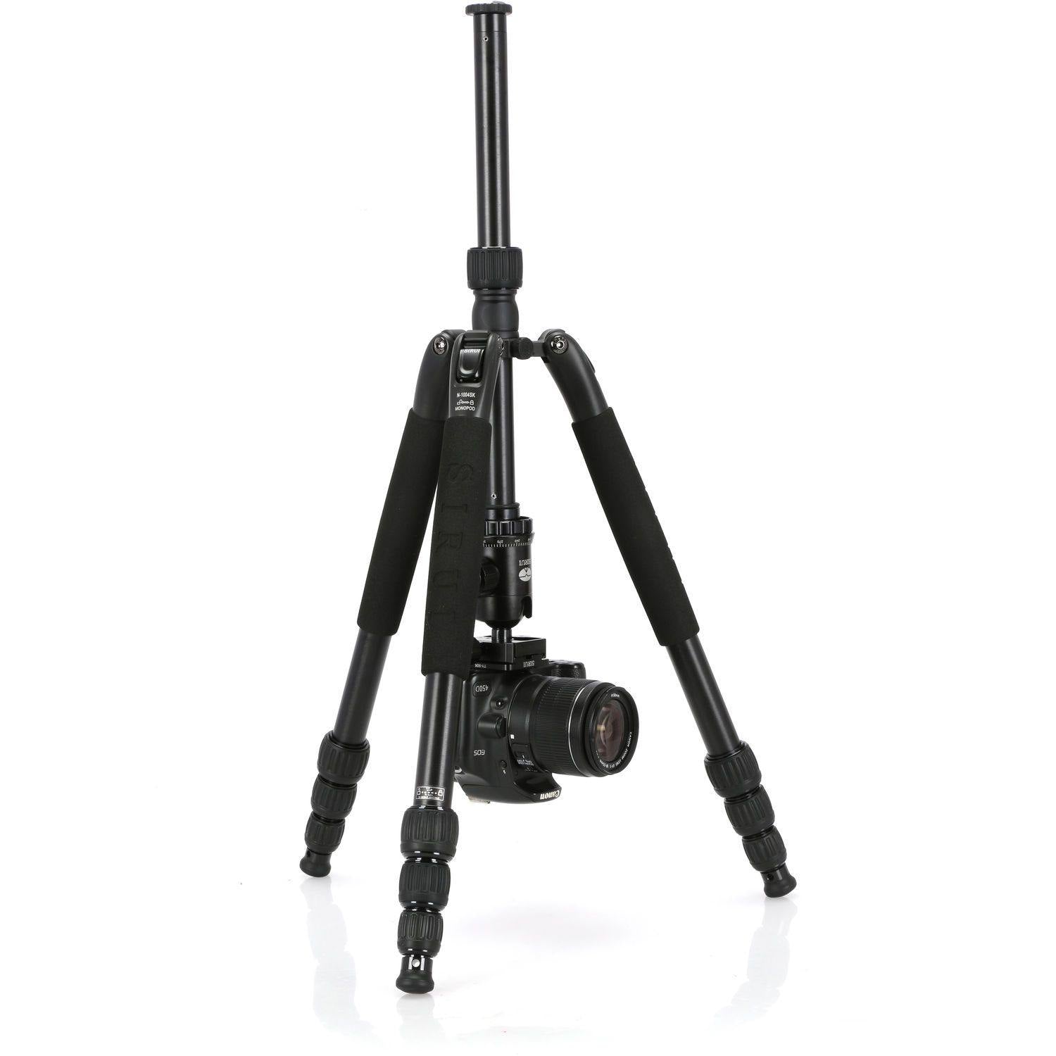 The Sirui N-1004SK N-S Series Tripod is a four-section support with aluminum legs that extend along with the rapid center column by unlocking each twist-lock section. The tripod can reach a maximum height of 62.2". With three variable legs angles, independent leg spread, and the use of the included split center column, the legs can completely splay out to offer a minimum height of 5.9". The center column is also reversible, so you can get closer to ground, which is ideal for macro or low-angle photography. To store or carry the 3.7-pound tripod, the legs fold 180° to produce a compact 18.3" support.