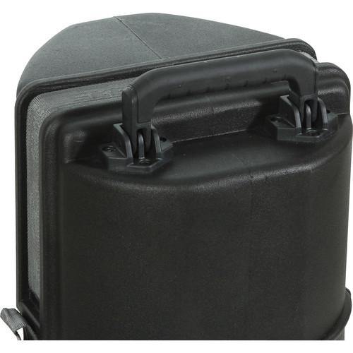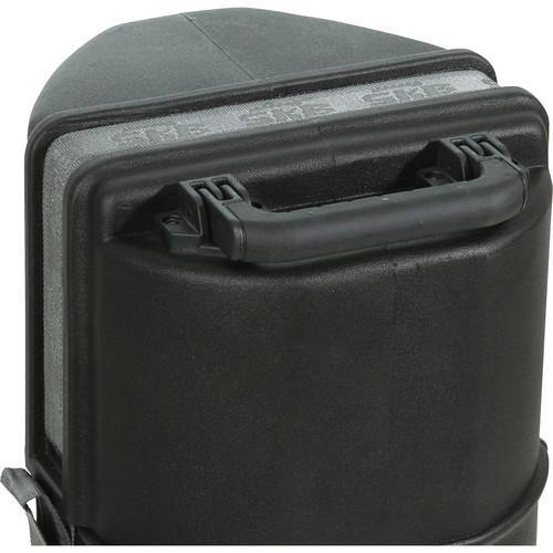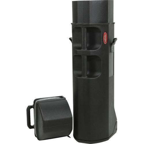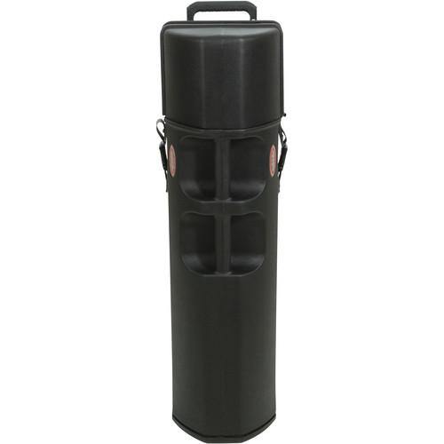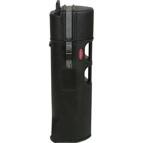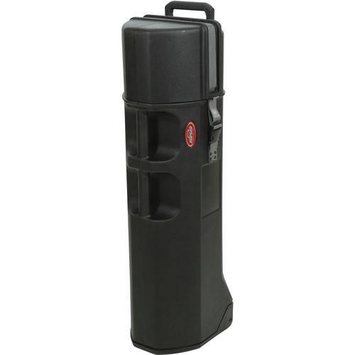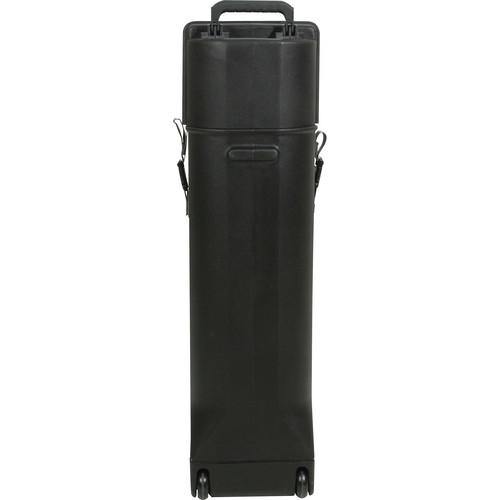 The 37" tall Roto-Molded Tripod Case with Wheels from SKB is designed to hold your tripod, or light stands. Foam in the lid and bottom protect your equipment from bumps and dings. Additionally, quiet glide in-line skate wheels with a top tow handle, and your gear is accessible via a removable top. Closure is achieved by adjustable web straps with a high-tension buckle. Both sides of the case have spaces for shipping labels.