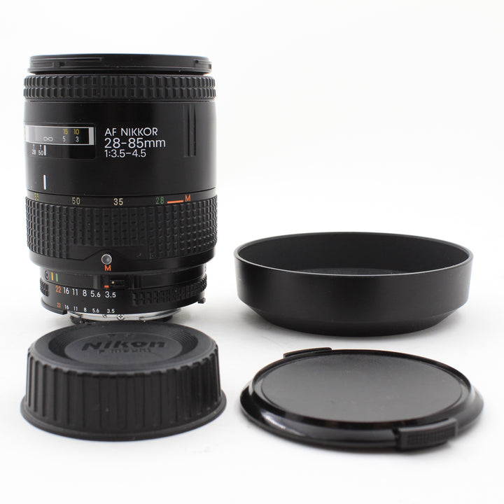 INCLUDED: USED Nikon AF Nikkor 28-85mm f/3.5-4.5 Lens, Nikon HB-1 Lens Hood, and Front and Rear Caps