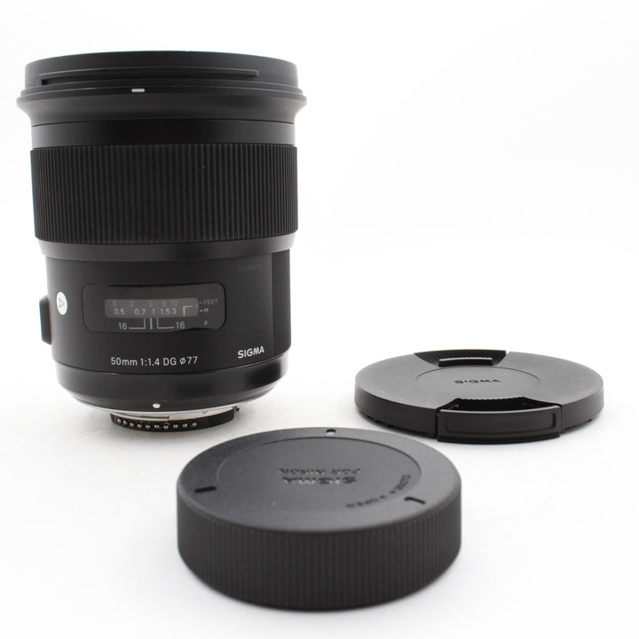 INCLUDED: USED Sigma Art 50mm f/1.4 DC Nikon F Mount, and Sigma Front and Rear Lens Caps
