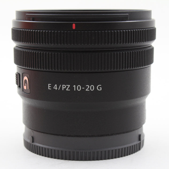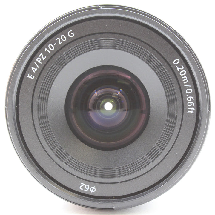 INCLUDED: USED Sony E PZ 10-20mm f/f G Lens, Sony ALC-SK169 Lens Hood, Sony Front and Rear Lens Caps, Original Packaging, and Product Box