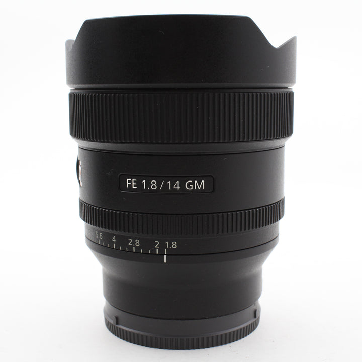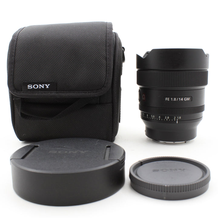 INCLUDED: USED Sony FE 14mm f/1.8 GM Lens, Sony Front and Rear Lens Caps, and Sony Case
