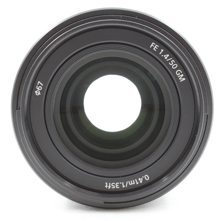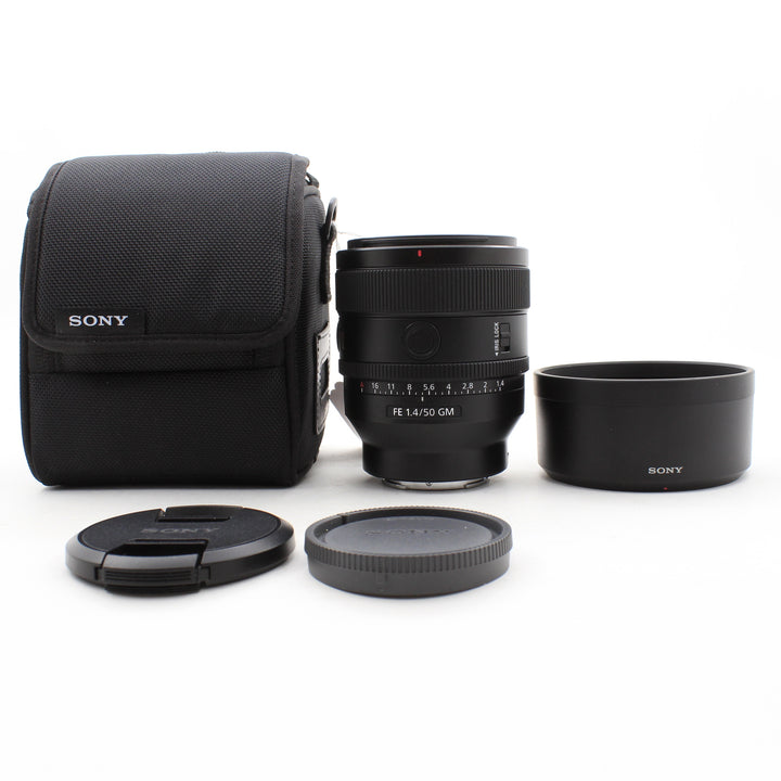 INCLUDED: USED Sony FE 50mm f/1.4 GM Lens, Sony ALC-SH173 Lens Hood, Sony Front and Rear Lens Caps, and Sony Lens Case