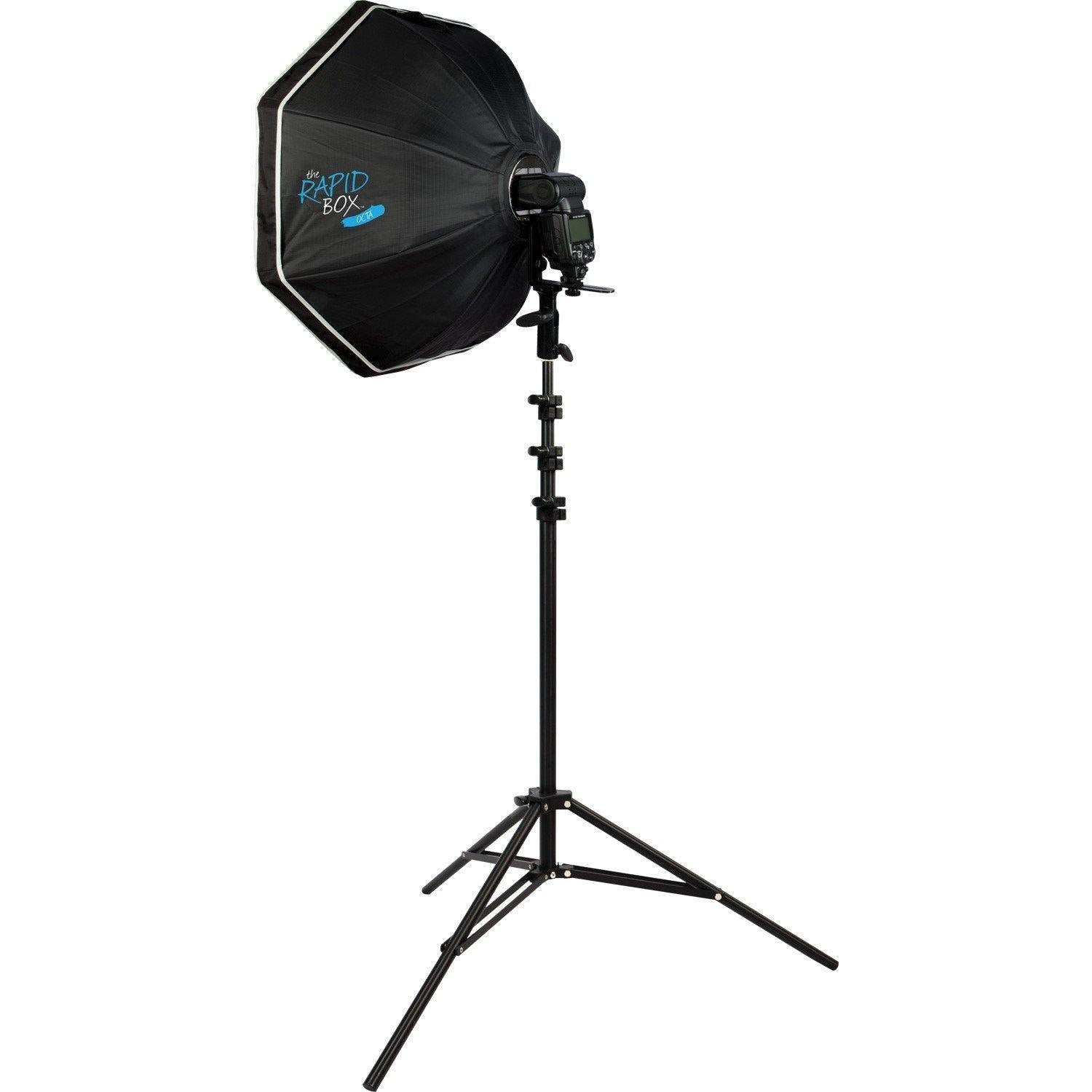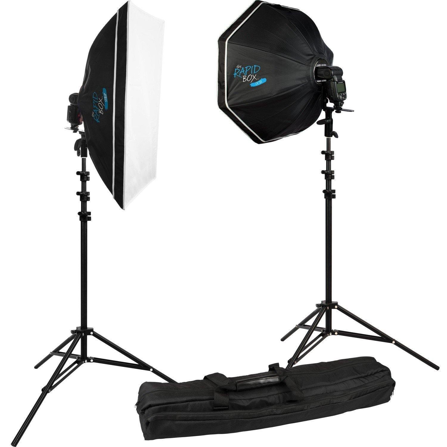 The Rapid Box 2-Light Speedlite Kit is a durable, all-in-one solution perfect for on-location portrait photography. The 26" Rapid Box Octa is the perfect main light, while the Rapid Box Strip acts as a great hair, rim or accent light. Constructed of solid aluminum, the Rapid Boxes are both lightweight and compact while maintaining their durability. Includes all necessary mounting hardware and is compatible with nearly all shoe mount flashes.